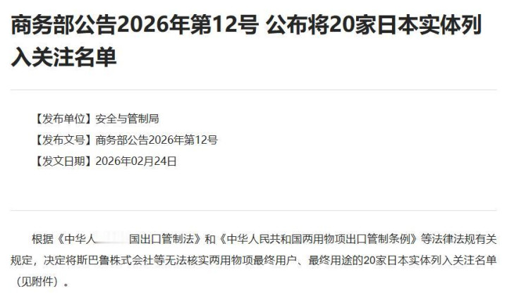 在上个月的时候,中国商务部已经出台了《关于加强两用物项对日本出口管制的公告》,很显然,关注名单制度是在公告的大背景下做的细分升级。